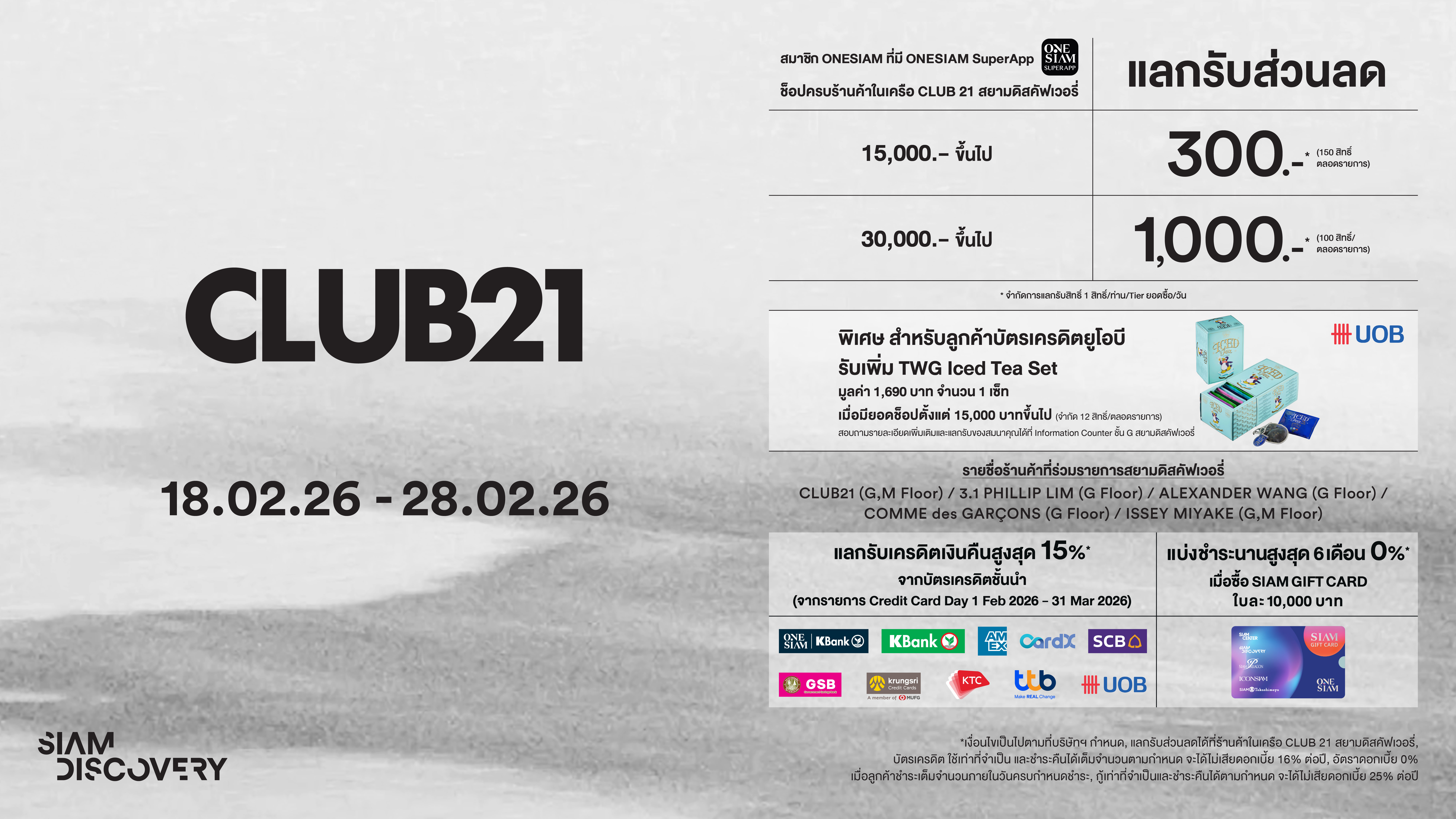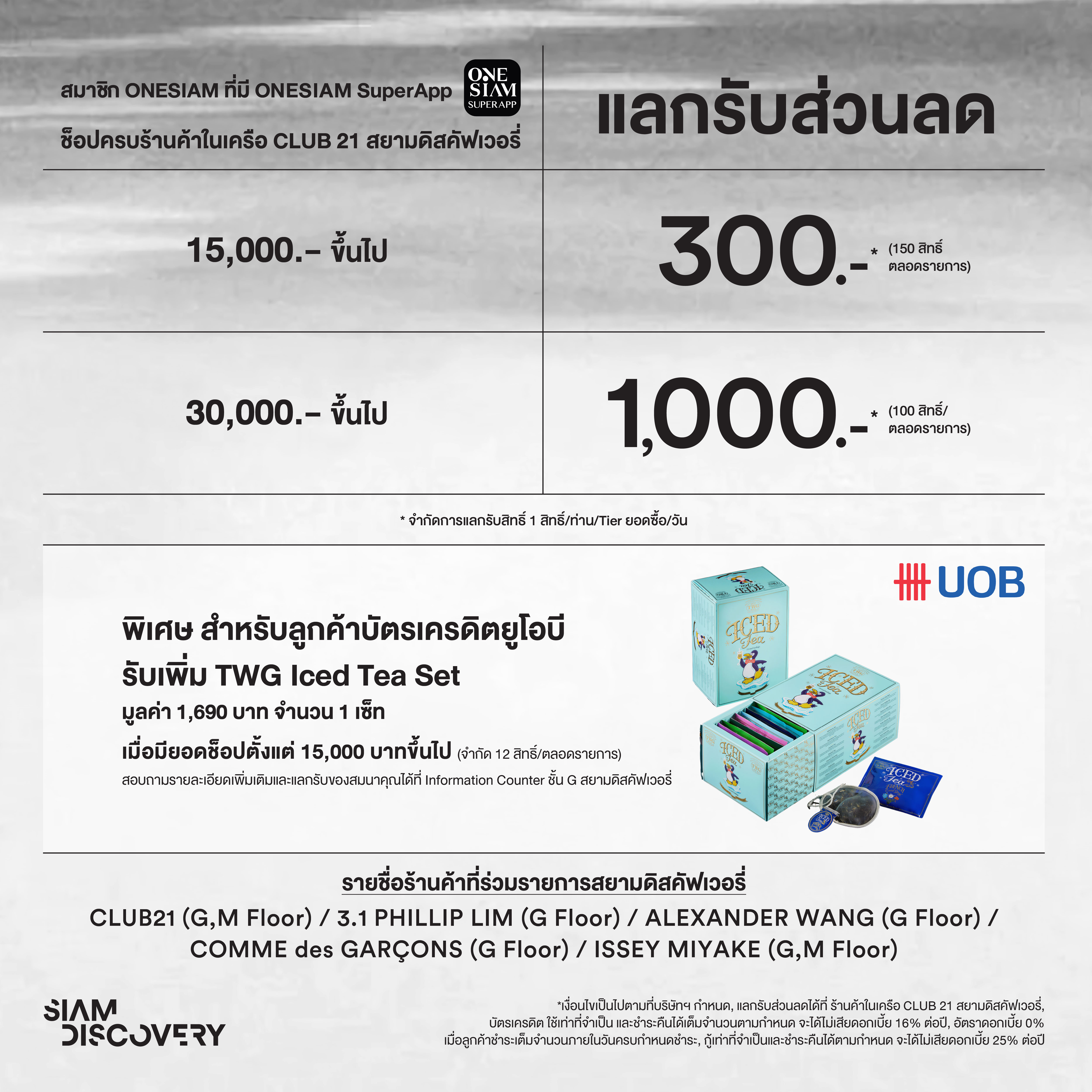 พิเศษ สำหรับสมาชิก ONESIAM ที่มี ONESIAM SuperApp ช็อปสินค้าแบรนด์ดังในเครือ CLUB 21 ที่สยามดิสคัฟเวอรี่