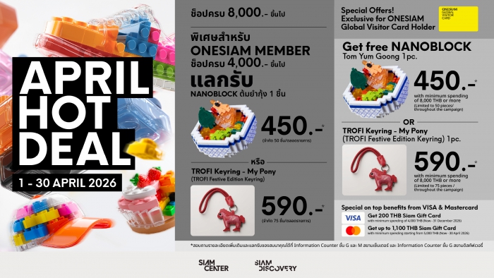 หมายเหตุ: สอบถามรายละเอียดเพิ่มเติมและแลกรับ SIAM GIFT CARD ได้ที่ Information Counter ชั้น G สยามดิสคัฟเวอรี่