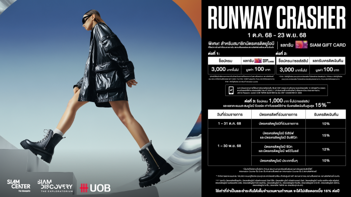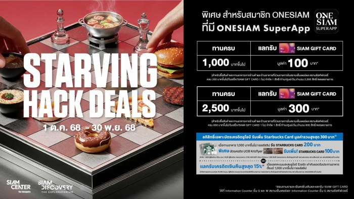 3. SIAM GIFT CARD มูลค่า 1,000 บาท ใช้สำหรับซื้อสินค้าในร้านค้าที่ร่วมรับ SIAM GIFT CARD 3,000 บาทขึ้นไป/ใบเสร็จ