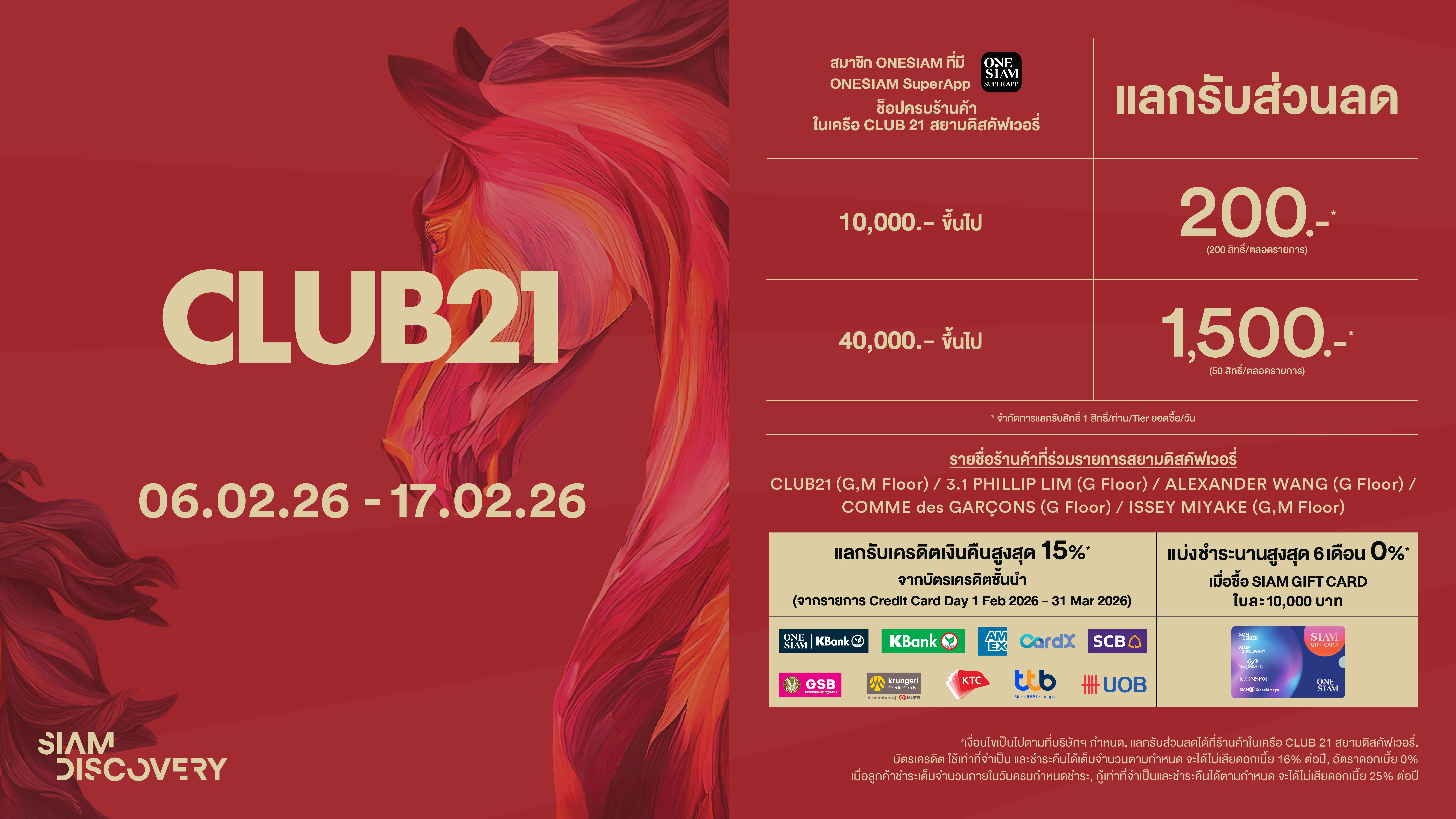 พิเศษ สำหรับสมาชิก ONESIAM ที่มี ONESIAM SuperApp ช็อปสินค้าแบรนด์ดังในเครือ CLUB 21 ที่สยามดิสคัฟเวอรี่