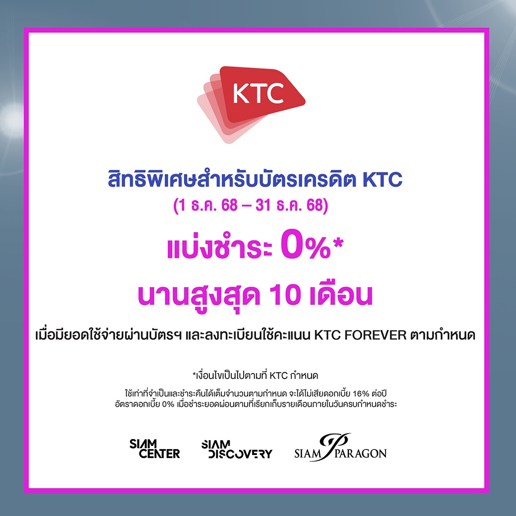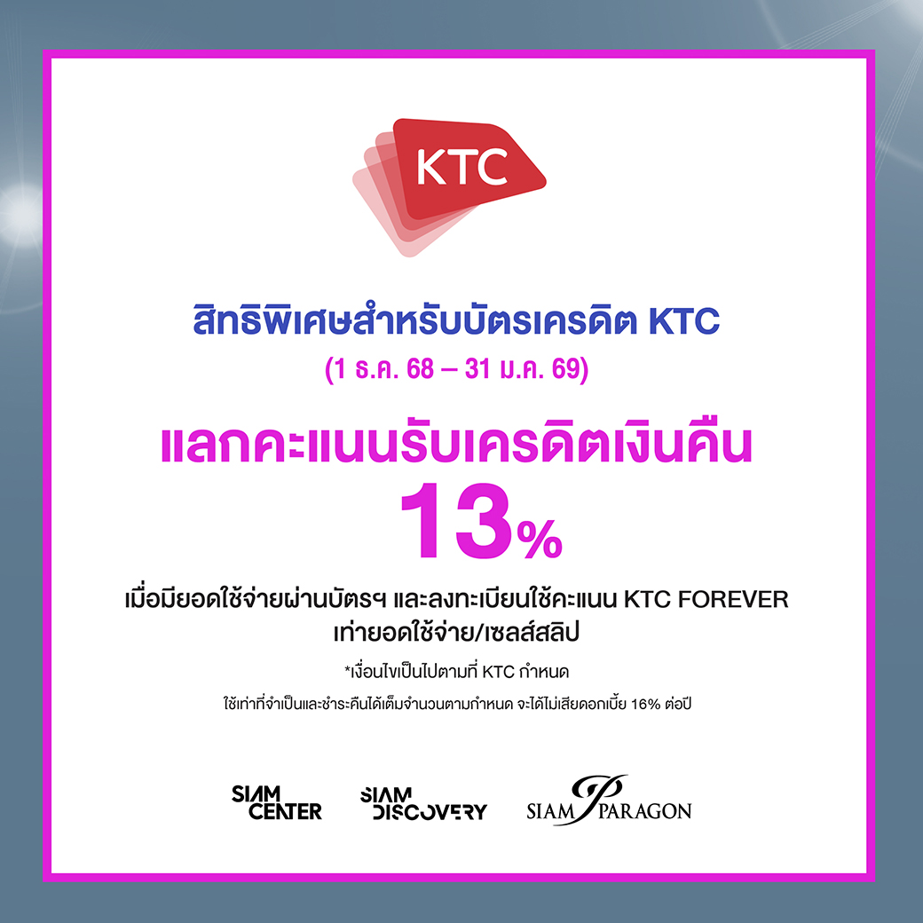 สิทธิพิเศษสำหรับบัตรเครดิต KTC (1 ธ.ค. 68 - 31 ม.ค. 69)