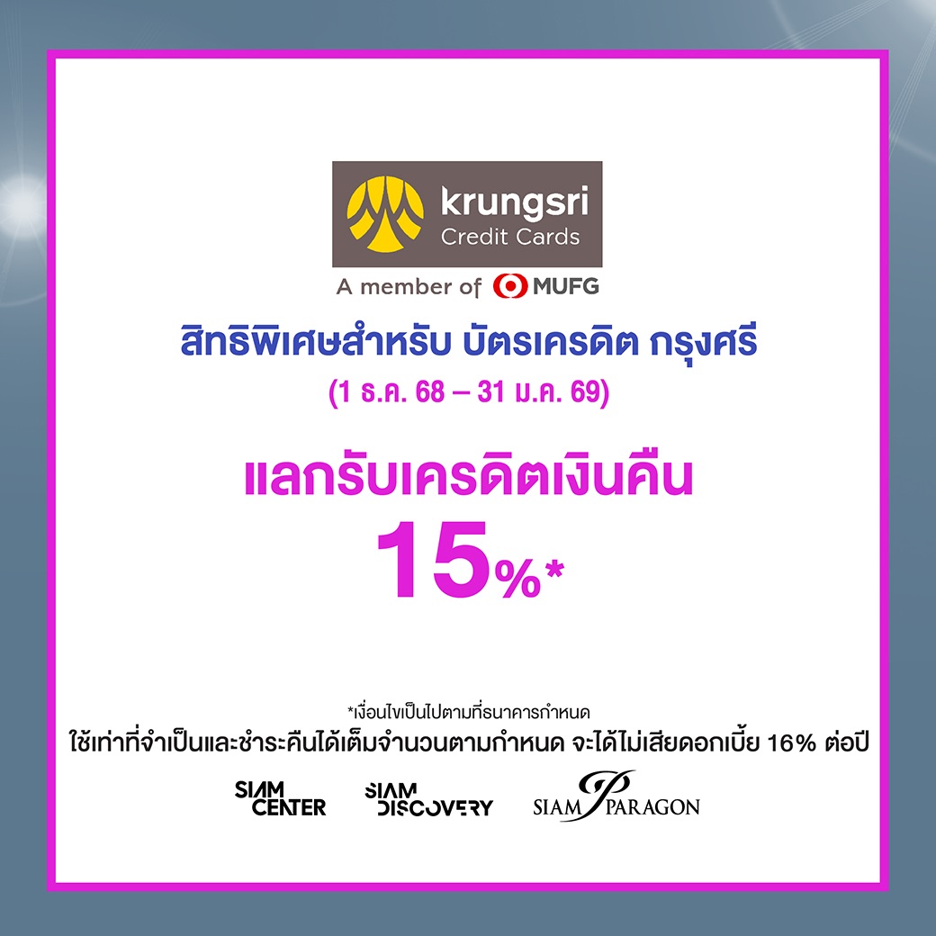 สิทธิพิเศษสำหรับ บัตรเครดิต กรุงศรี (1 ธ.ค. 68 - 31 ธ.ค. 68)