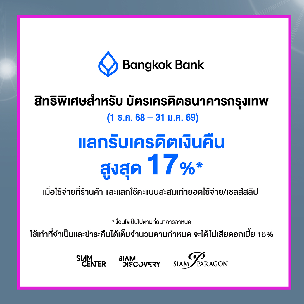 สิทธิพิเศษสำหรับ บัตรเครดิตธนาคารกรุงเทพ (1 ธ.ค. 68 - 31 ม.ค. 69)