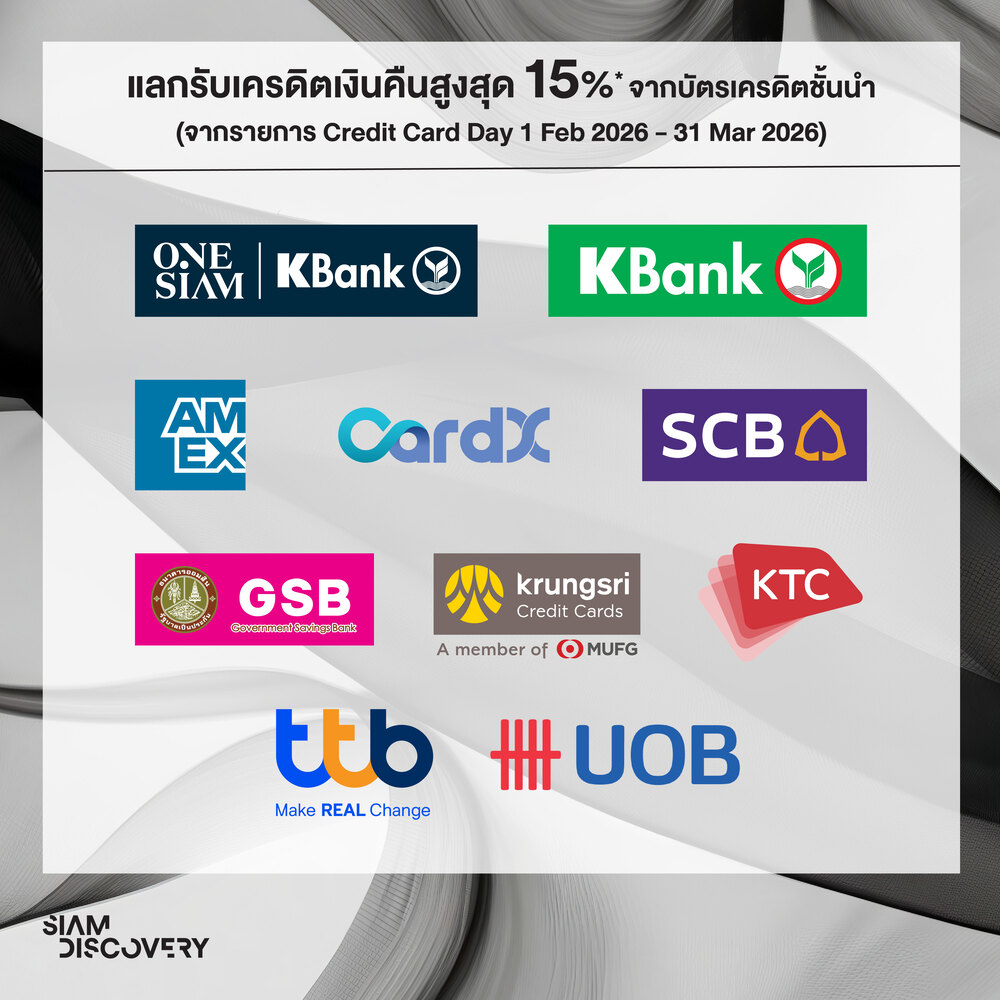 แลกรับเครดิตเงินคืนสูงสุด 15% จากบัตรเครดิตชั้นนำ (จากรายการ Credit Card Day 1 ก.พ. – 31 มี.ค. 69)