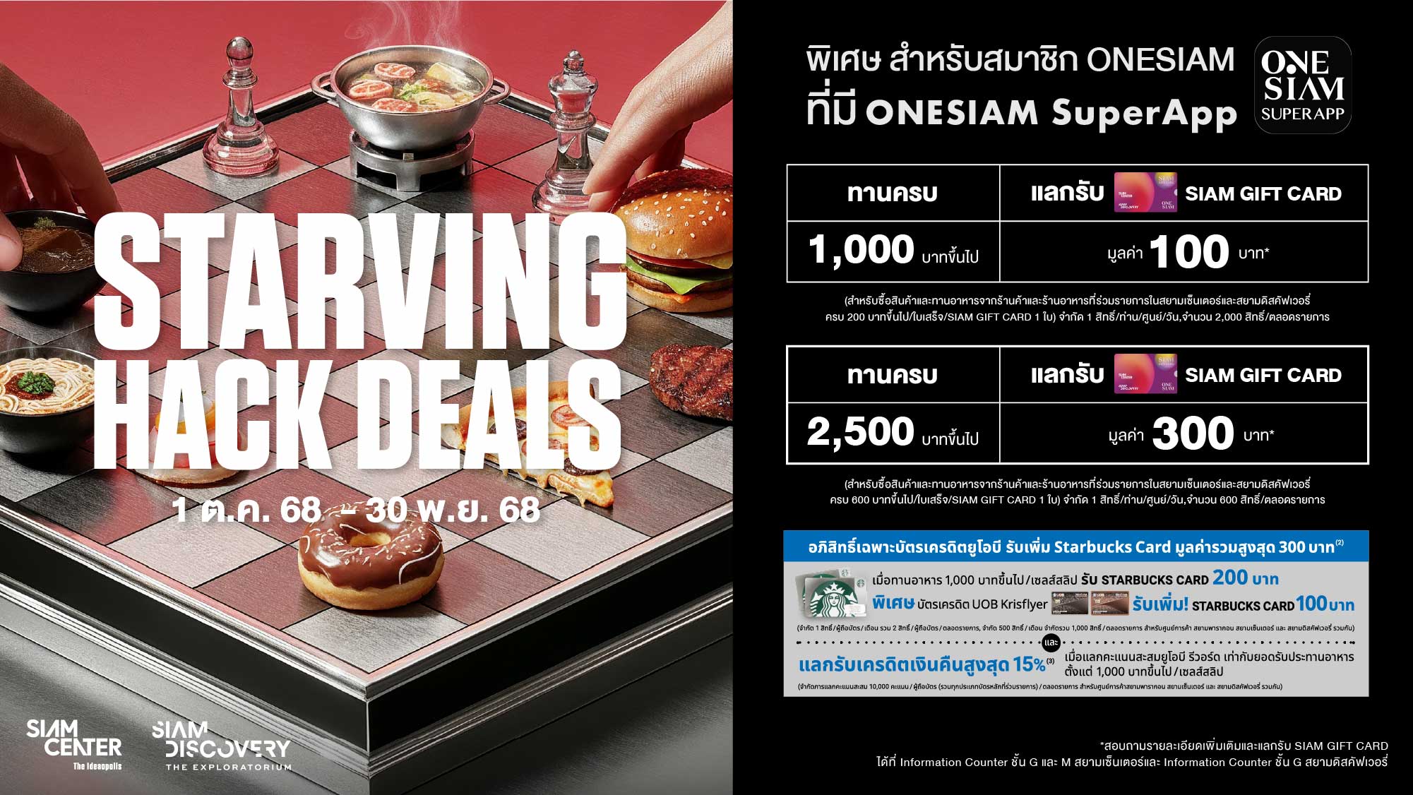 พิเศษ สำหรับสมาชิก ONESIAM ที่มี ONESIAM SuperApp ที่ทานอาหารจากร้านอาหารในสยามเซ็นเตอร์และสยามดิสคัฟเวอรี่