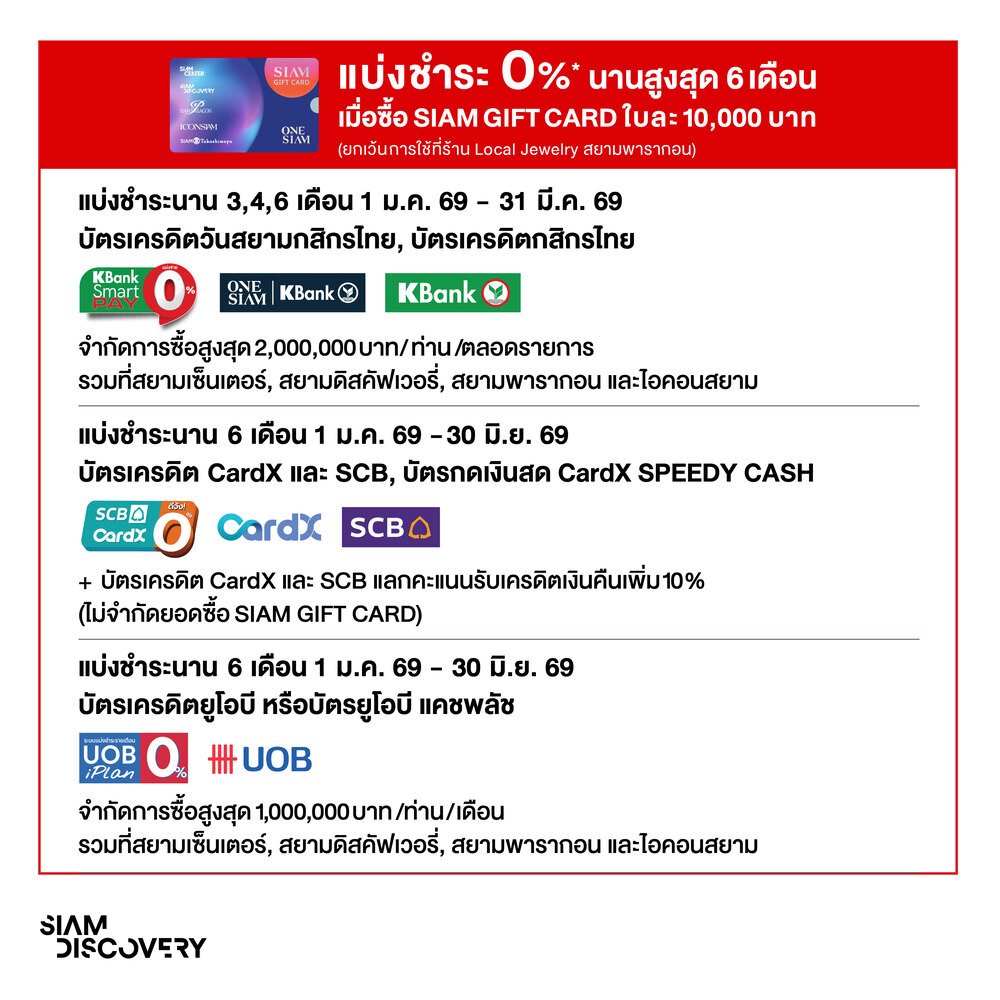 พิเศษ สำหรับสมาชิก ONESIAM MEMBER ช็อปครบ 10,000 บาทขึ้นไป ที่ร้าน COMME des GARÇONS สยามดิสคัฟเวอรี่ แลกรับส่วนลด 300 บาท จำกัด 1 สิทธิ์/ท่าน/วัน, จำนวน 200 สิทธิ์/ตลอดรายการ